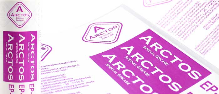 Printed on the Etiquette presses were these labels for Arctos’ range of super grease which is used to help lubricate moving parts of industrial machines. The labels were printed on a special synthetic material so it has a higher resistance to abrasions and offers a high level durability and resistance from a variety of outdoor and chemical environments.