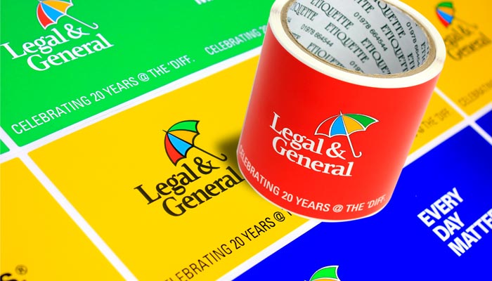 Legal & General were founded in 1836 when six solicitors got together in a Chancery Lane coffee shop in London the company has grown globally to help over 10 million people globally with savings, investing, building retirement income and insuring. These labels were produced by our digital department using the latest digital printing technology such as UV inks. The labels feature the Legal & General Logo with its instantly recognisable trademark multi-coloured umbrella, along with the company slogan of “Every Day Matters.” Along with this the labels also feature catch line of “Celebrating 20 year’s @ The ‘Diff.” 4 different designs have been printed in the colours of the umbrella emblem that adorns the company logo. For more details on our label printing service contact Etiquette on 0845 222 0354 or you can email the Sales Team at: sales@etiquette.co.uk