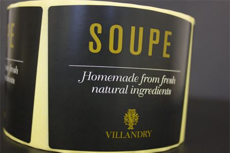 These elegantly poised labels have been printed by Etiquette. The minimalist design really stands out and the tapered shape of the label means that it will be easy to apply to the products packaging. Printed with the latest in UV ink technology these labels are sure to stand out from the crowd with its sleek a two colour print process and attract many of customers who have a great taste in soup and labels. For more information about printed labels contact our sales team direct on 0845 222 0354 or email us at sales@etiquette.co.uk.