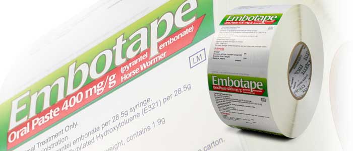 Fresh off the printing presses this morning are these 90mm x 90mm square labels for Embotape, a leading brand of Horse Worming Medication. The labels feature the Embotape logo and detailed instructions on the correct usage of the medication. In addition to being printed with the latest UV inks for outstanding print quality the labels were also produced using one of Etiquette’s signature durable label materials. For more details on our label printing service contact us on 0845 222 0354 or you can email the Sales Team at: sales@etiquette.co.uk