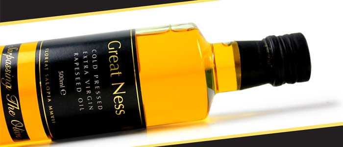 For a number of years we have produced an elegant range of labels for local business Great Ness Oil which is located in the nearby county of Shropshire. After much research into production of rapeseed oil and the subsequent development and marketing a new brand, Great Ness Oil was formed in 2007 with the mission of producing the finest quality rapeseed oil.