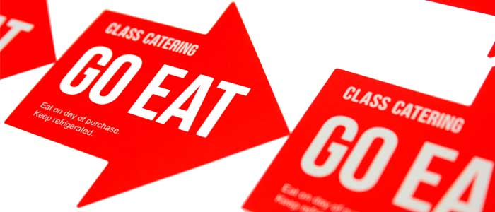 Class Catering was founded in 1998 with the desire to provide a bespoke catering service, where food is prepared to the highest standards. Class Catering provide fresh, healthy nutritious foods and professional catering solutions to both public and private education outlets in addition to operating numerous catering contracts in Worcestershire, Herefordshire, Shropshire, Warwickshire and Gloucestershire. When Class Catering launched their “GO EAT” campaign they approached Etiquette to produce high quality labels to help promote the initiative. Our expert printing team produced these vibrant and eye-catching labels using specialist UV ink technology combined with the latest printing techniques to produce these truly outstanding labels. For more details on our label printing service contact Etiquette on 0845 222 0354 or you can email the Sales Team at: sales@etiquette.co.uk