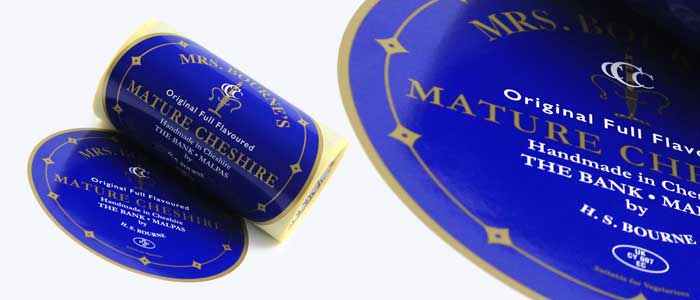 Since 1930 the Bourne family have been hand-making award winning cheese, deep in the heart of the Cheshire countryside. We have the pleasure of working with the Bourne family for a number of years and have produced labels for their select range of artisan cheeses such as Tom Bourne’s Oak Smoked Cheshire, Traditional Farmhouse Cheshire and of course Mrs Bourne’s Mature Cheshire cheese. These labels were printed using the latest UV ink technology and will embellish Mrs. Bourne’s signature variety of cheddar cheese. For more information on our printing services or any other services we provide you can call our sales team direct on 0845 222 0354 or email us at sales@etiquette.co.uk