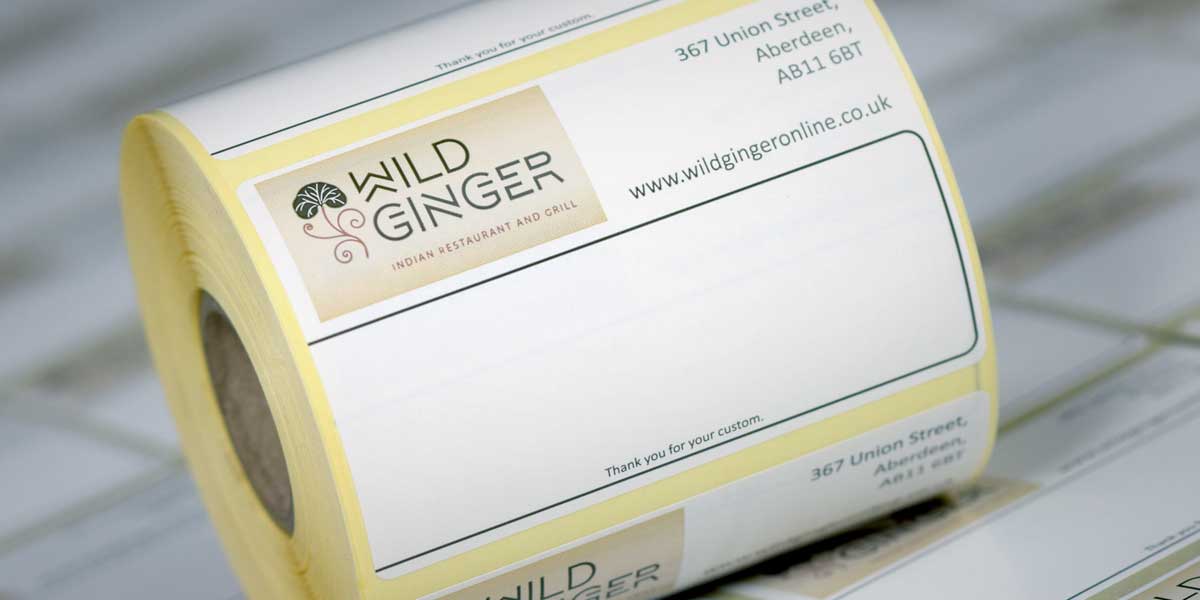 Fresh off of the printing presses are these labels for the Wild Ginger Indian Restaurant. The labels were printed using UV inks and feature the restaurants logo and contact information in addition to an over-printable area which allows for additional information to be printed. For more details on our label printing services contact Etiquette on 01978 664544 or you can email the Sales Team at: sales@etiquette.co.uk