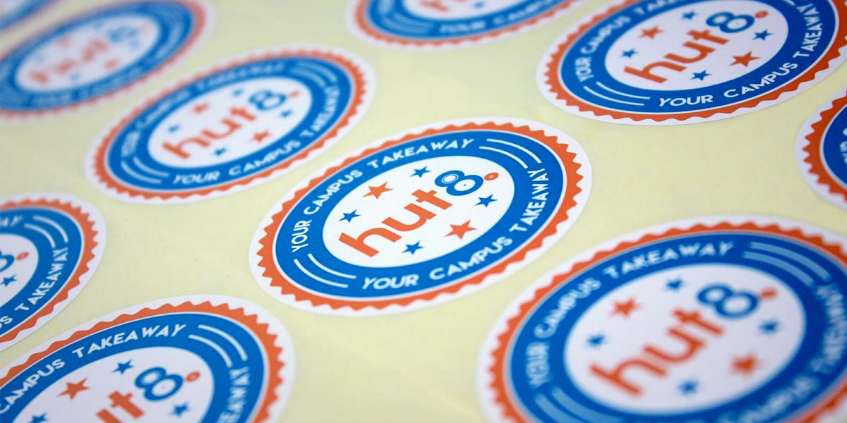 Located on Kent University campus Hut 8 restaurant offers a wide variety of dishes cooked on a flame-grill, rustic homemade pizzas and of course the Great British classic fish and chips. Hut 8 features a unique online ordering service which offers delivery around the campus 7 nights a week to hungry students. These circular labels were printed on our very own Mark Andy P4 printing press using UV inks to match the restaurants branding. For more details on printed labels contact Etiquette on 01978 664544 or you can email the Sales Team at: sales@etiquette.co.uk
