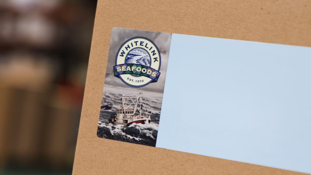 Seafood production environments are notorious for extreme temperatures, condensation, and constant handling. The labels utilise a permanent high-tack adhesive designed specifically for low-temperature applications, ensuring strong adhesion on corrugated cases even in refrigerated or frozen storage. Combined with the synthetic face stock, the result is a label that stays firmly applied, resists peeling, and maintains print clarity from packing to delivery.