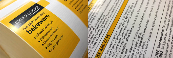 Etiquette is the Chef’s Choice for Printed Labels. These Chef’s Larder labels measure in at 150mm x 196mm and are tastefully designed and well executed using minimal colour and space. Printed using the latest UV ink technology with a bold two colour design on the front and on the reverse, that makes the label is sure to have excellent on shelf appeal. With an over printable Matt finish that allows Chef’s Larder to print additional information such as barcodes or product codes when required. In addition this label features one of etiquette’s special removable adhesives that allow the end user to remove the label from a finished product and view instructional information that has been printed on the reverse. For more details contact Etiquette on 0845 222 0354 or you can email the Sales Team at: sales@etiquette.co.uk