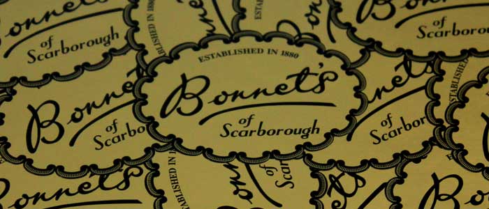 We work with a wide range of businesses from industry leader, global brands and start-ups, to produce labels to improve brand recognition and on-shelf appeal of their products. One such customer we work with is Bonnet’s of Scarborough, a traditional chocolatier and restaurant. Established in 1880 by Louis Bonnet, the shop is one of the oldest producers of chocolate in the country and still use traditional handmade methods to ensure each product is lovingly crafted. Bonnet’s approached Etiquette to produce labels that reflect their belief in traditional methods and heritage.