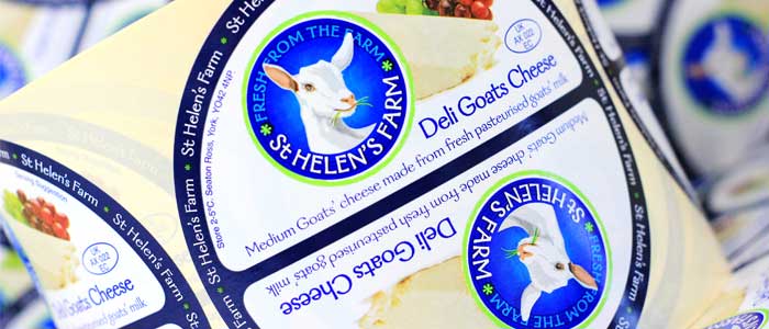 Founded in 1986 on a smallholding near Barmby on the Marsh in East Yorkshire, St. Helen’s farm began when it discovered that goats milk was of great appeal to those were intolerable to cow’s milk. The farm began by milking 500 goats and soon started supplying customers such as Waitrose and Hillards initially, with a blend of sheep and goats’ milk yogurts. Today, the dairy supplies fresh goats milk products to a variety of supermarkets across the country on a daily basis. One such product is the revered Deli goats Cheese which has won many awards including a Great Taste Award consecutively for 5 years. With an ever growing demand for their fine products St. Helen’s farm approached Etiquette, knowing we provide a reliable service, in addition to the best quality labels on the market today.