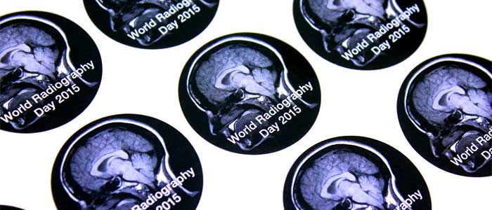 By using the latest UV inks and printing techniques we were able to print these circular labels. The design is focused around the industry using a photographic still of head scan, to raise awareness of the day, and jobs radiographers do. These simple but striking labels are sure to catch the attention of any person who sees them. This is a drastic overhaul from last year’s design which featured a design around poppy’s as a mark of respect to Remembrance Day. You can see last year’s design by following this link.